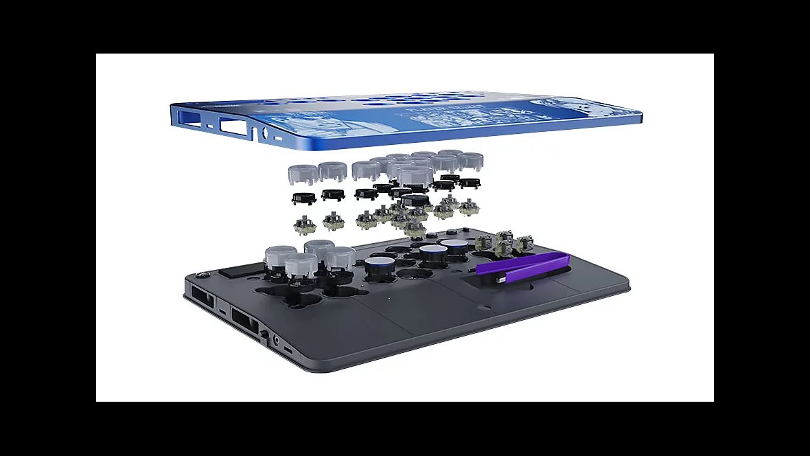 - Полностью настраиваемый файт-стик с 16 подвижными кнопками;