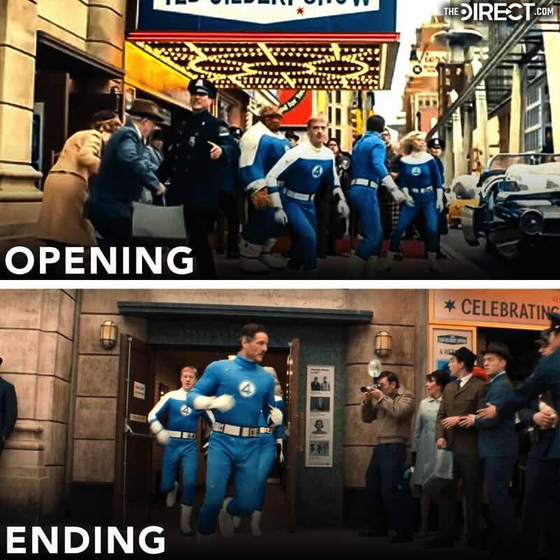 Первоначально планировалось, что «Первые шаги» начнутся и закончатся с ток-шоу Теда Гилберта. Фанаты догадались об этом по трейлерам, показывающим Четверку на шоу.