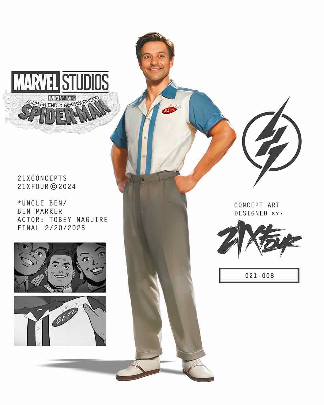 В соцсети X художник 21XFOUR поделился своим концепт-дизайном актера в роли дяди Бена. Несмотря на то, что арт вдохновлен фильмами, но содержит отсылки к дяде Бену из первого сезона «Вашего дружелюбного соседа Человека-паука».