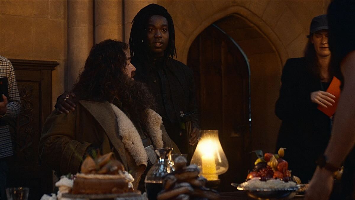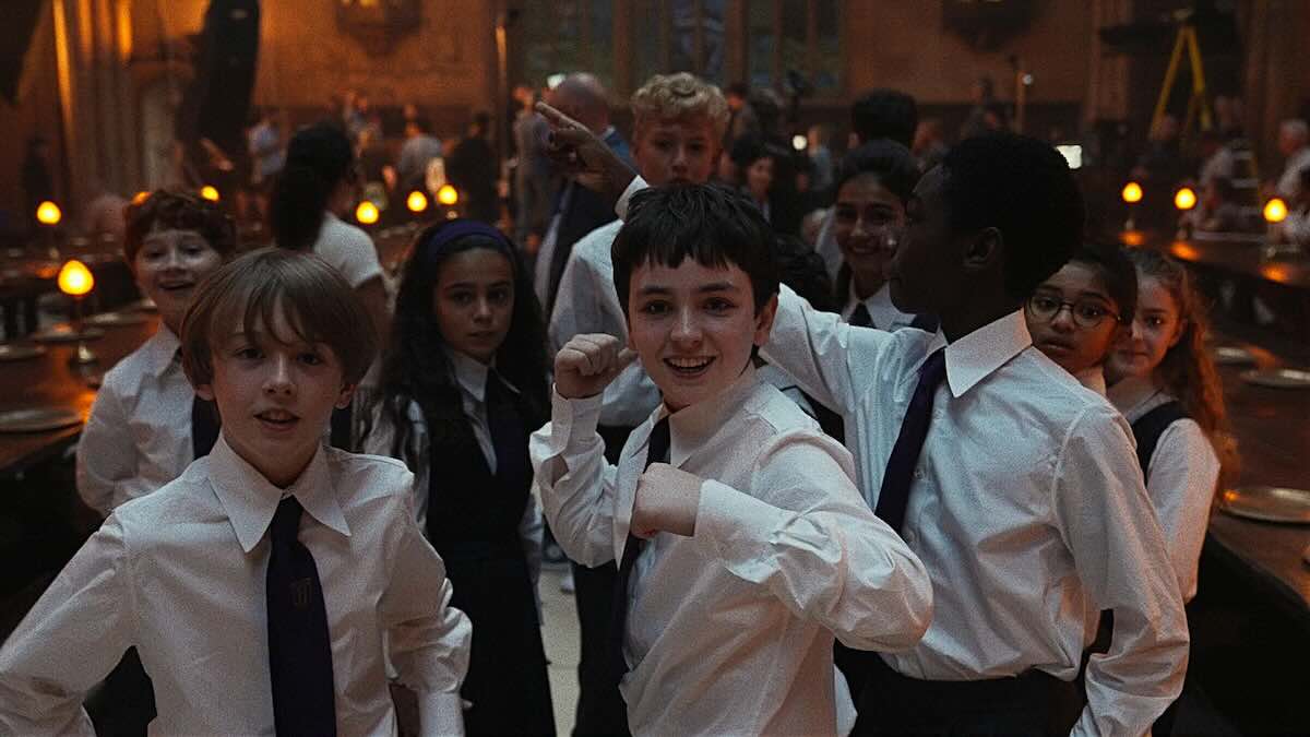 Отдельно коснулись костюмов: люди в реальном мире одеты так, будто на дворе начало 90-х, в то время как волшебный мир экстравагантен. Обычные костюмы маглов были в основном блеклыми по цвету, в то время как форма в Хогвартсе гораздо красочнее.