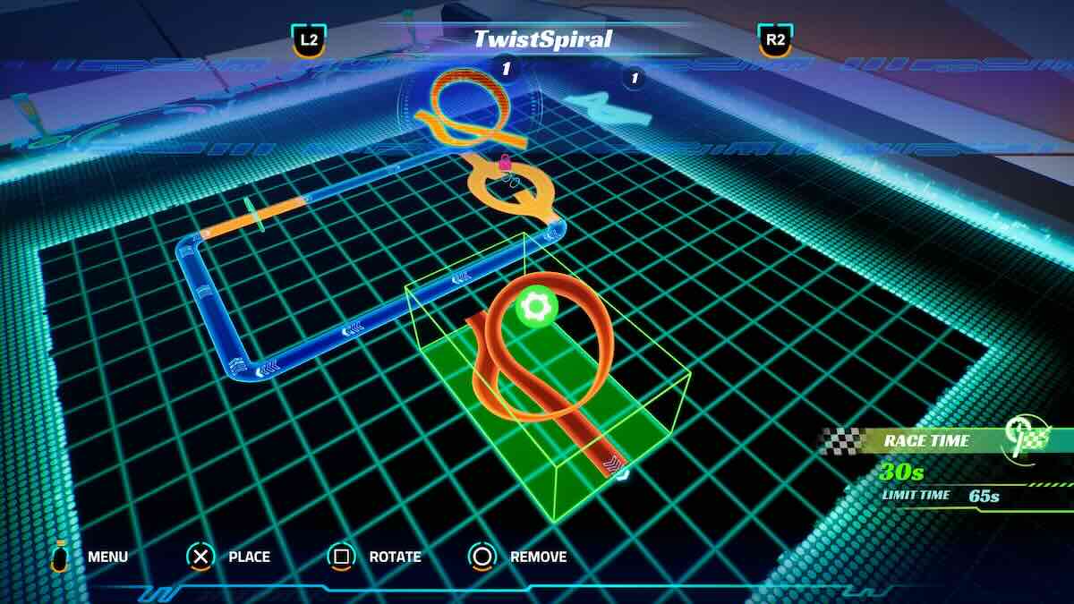 Из уникальных механик здесь редактор трассы. Можно не только создать свой трек, но и модифицировать уже имеющиеся. Перед началом заезда нужно выбрать элемент трассы, который будет интегрирован. Меняет ли это как-то ощущения от игры? В теории должно, но на деле особых отличий не замечаешь.