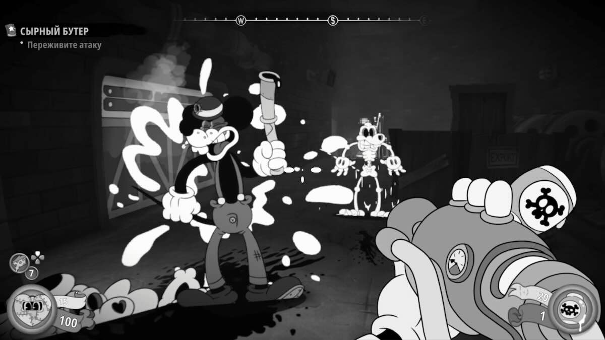 Студия Fumi Games поистине уникальное произведение, которое от и до отражает задумку. Это бумер-шутер от первого лица в стиле мультиков 60-е. Если вы видели оригинального «Микки Мауса», то тут примерно оно. В пример можно привести Cuphead. Хотя стилистика разная, главная особенность — визуальная составляющая. Даже выбор уровня стилизован: